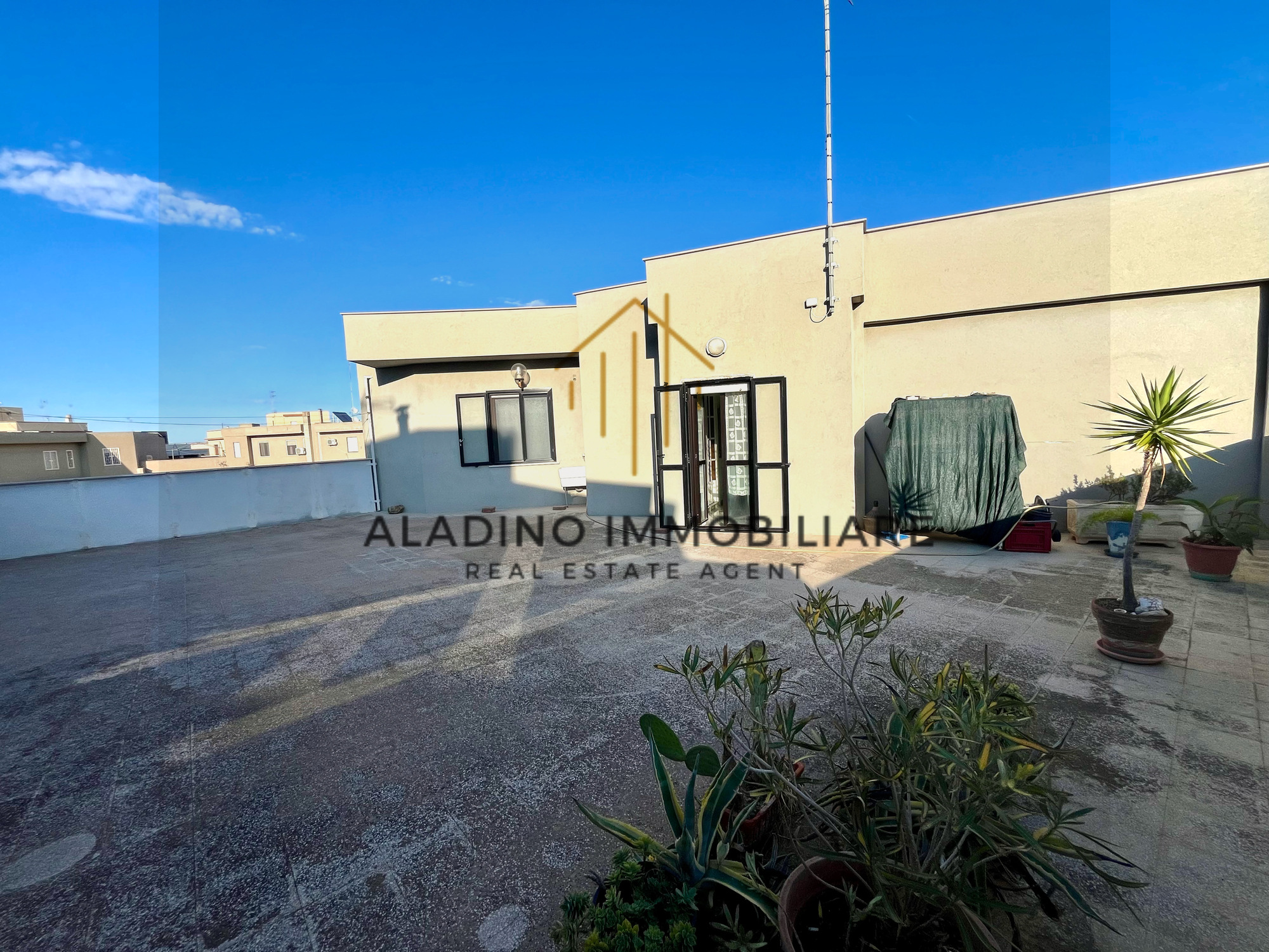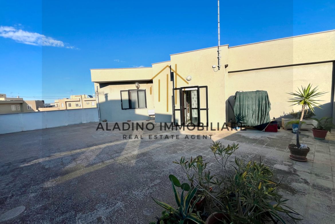 In una delle zone residenziali più richieste e servite di Trani, a pochi passi da scuole, attività commerciali e servizi di ogni genere, proponiamo in vendita un prestigioso attico di 224 mq commerciali, caratterizzato da spazi ampi, luminosi e versatili. L’abitazione si sviluppa in maniera funzionale e si compone di: quattro camere da letto; ampio e luminoso soggiorno; cucina abitabile con accesso diretto all’esterno; due bagni, di cui uno di generose dimensioni, ideale per il massimo comfort; due ampi terrazzi, perfetti per vivere momenti all’aperto in assoluto relax; un terrazzo coperto, utilizzabile tutto l’anno. Grazie alla posizione al piano attico, l’immobile gode di eccellente esposizione solare e vista aperta, rendendo ogni ambiente accogliente e luminoso. Una soluzione ideale per famiglie che cercano spazi generosi in un contesto ben servito e di prestigio. La vendita è affidata in esclusiva ad Aladino Immobiliare – Trani.
